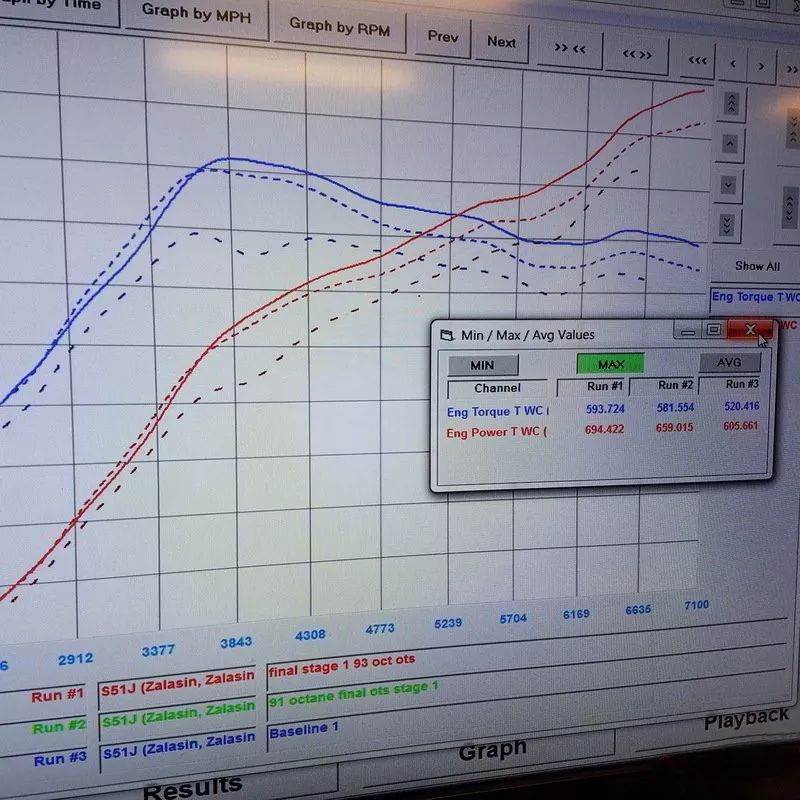 在经过Cobb Accessport V3对ECU Setting Map的进一步调教后,这台后置后驱战车不仅达到了“1:1.15”的2WD极佳输出比,最大马力也最终由原厂的700匹上涨到近乎810匹!更加决定加速性能的峰值扭矩更是一路飙升至804牛·米!