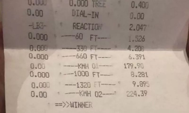 有意思的是,一试身手的光荣使命交给了来自中东、此前曾多次驾驶911死敌GT-R刷新世界纪录的顶级零四劲旅——Ekanoo Racing!最终,这台近乎原厂化形态、只是轻度改装的991.2 GT2 RS不负众望,以9.89秒的零四ET,224.39km/h的冲线尾速,一举拿下了该车型当今的全球最速纪录!