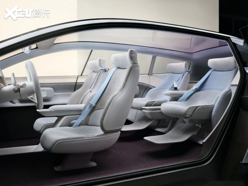 如果我们拿着放大镜,去审视这辆车,就会发现除了绝美的设计,还有一些功能也很值得玩味。极致的人本主义,在于人与人之间,比如与家人共度的时光。而这正是这辆概念车在座舱设计上的出发点,他们把整个“北欧客厅”搬进了车内,在注重功能性的同时,也拿捏住了艺术性的视觉享受,可谓是后功能主义的典范之作。通过仔细观察,不难发现虽然车内地板十分平整,但后排高度总会比前排略高一些,不为别的,只为车内每位乘客都能真正享受到来自宝华韦健的“宠溺”,而这种逐排上升的剧院式布局,无疑对声场的合理安排有积极贡献。如果你是位孩子,肯定对车辆路过的每一帧窗外景色都充满了兴趣,通过一系列复杂的技术,沃尔沃实现了在侧窗上实时投射窗外景物的科技,不仅是侧窗,就连天窗也能实现投影功能,全家人还可以进行手势游戏,让旅程变得更加有乐趣。