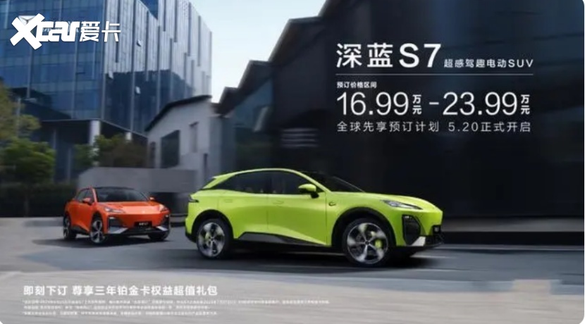 5月20日,深蓝汽车旗下第二款车型——深蓝S7正式开启了预售,其价格区间为16.99万-23.99万元。