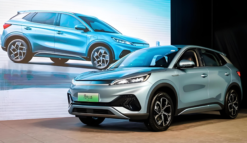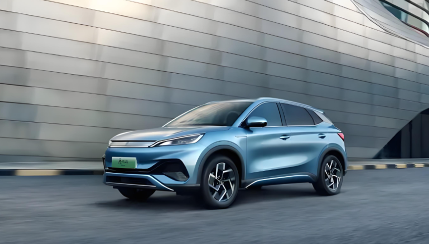 再来看比亚迪元PLUS,它的整体设计偏稳重,饱满的车身比较符合大众审美,车身的整体比例很协调,美中不足的是这款车型推出有几年了,缺少了些个性,同时也让人产生了视觉疲劳。