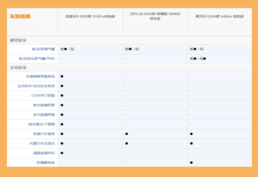 简单对比下就能发现,深蓝S05智能安全辅助系统是最全面的。