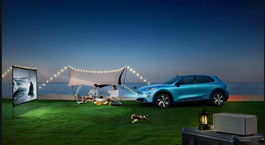 深蓝S05 还有DEEPAL百万像素智趣光影大灯,130万像素、120英寸投影画幅,搭配2个25W车外音响,可随时开启户外KTV,而且可以解锁星空电影院、光影游戏厅、光绘涂鸦墙等多种玩法。而且它不仅仅是氛围灯,同时还可辅助行车,给安全多一层保障。