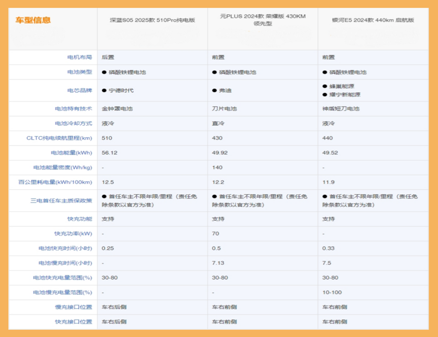 深蓝S05、比亚迪元PLUS和吉利银河E5,如果单纯比耐力的话,后面哥俩可就吃大亏了,因为深蓝S05有增程版。不带这么欺负人的,还是都拿纯电版来比拼吧。