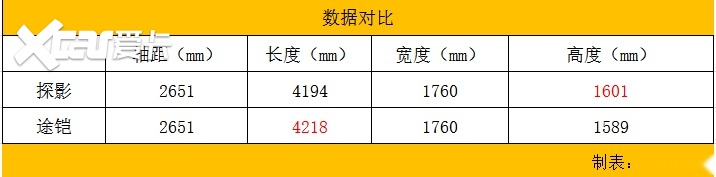 而车身尺寸方面,探影与途铠轴距和宽度是相同的,但在长度上,途铠更长;在高度上,探影则更高,两者在小型SUV中都有不错的竞争力。