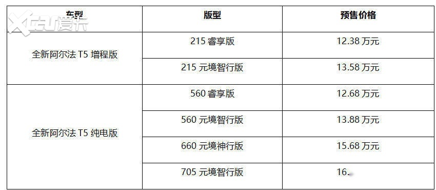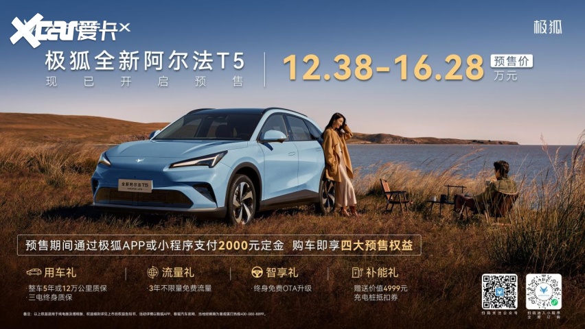 据悉,极狐全新阿尔法T5预售共推出6个版型,包含纯电和增程两种动力形式,预售价格12.38万元—16.28万元,以更年轻的设计风格、更强的动力续航、更智能的操控、更舒适的驾乘和天花板级的安全健康,为年轻家庭用户带来了中级SUV的新选择。即日起通过极狐APP或小程序支付2000元定金,购车可以享受整车5年或12万公里质保、三电终身质保、3年免费不限量数据流量、终身免费OTA升级、价值4999元充电桩安装抵扣券等四重礼遇,再次刷新中级SUV的价值标准!