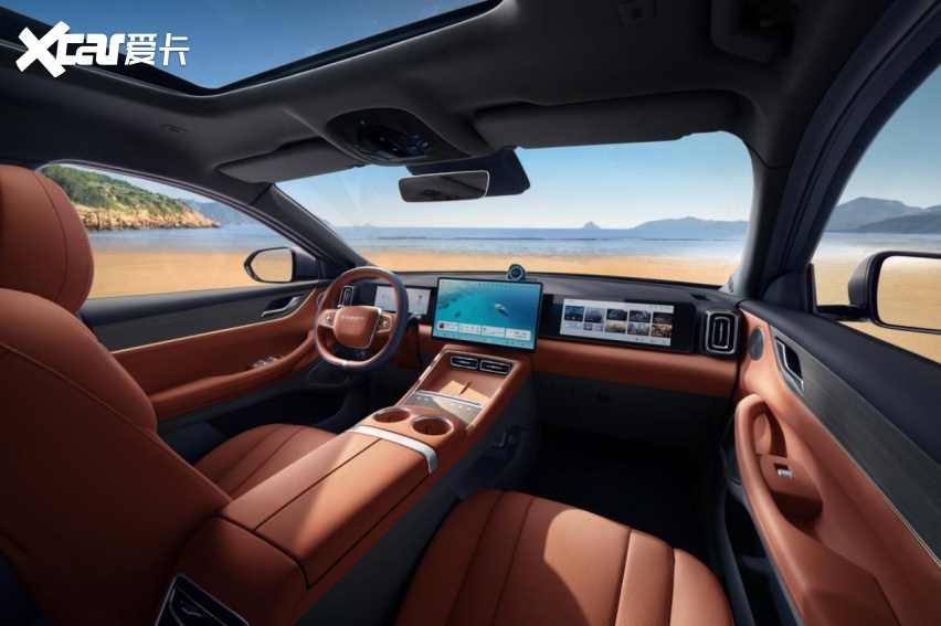 首先在内饰材质方面,星途ET5的「新奢感」满满。「爱马仕橙」的配色方案搭配麂皮顶棚,整车软包覆盖率极高,触手可及之处都是柔和的亲肤材质,瞬间打破了凹凸君对于15万级车型的内饰认知。中控台采用中轴对称设计,悬浮式中控屏下方配有空调出风口和手机无线充电面板。另外悬浮式中控屏上方还有圆形电子表设计。车内搭载双辐式方向盘,其次门板和中控台都有氛围灯设计。