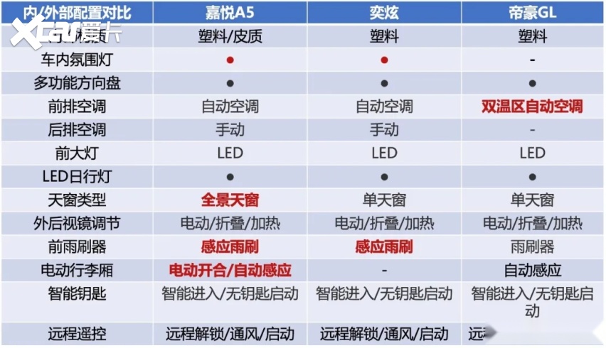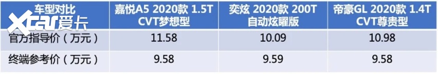 在10万元的售价区间里,三款车型都是非常不错且值得购买的车型。嘉悦A5外观设计出众符合时尚潮流所需,掀背式的造型以及跨级的车身尺寸、丰富的车载互联系统、表现强势的车内空间、1.5T+CVT以及后多连杆独立悬架所带来的舒适性要好于扭力梁,这些都是对手值得学习的地方。奕炫虽然在空间以及动力方面处于劣势,但在智能安全辅助系统、360度全景影像具备优势。帝豪GL作为10万元左右的代表性车型,拥有着很强高的知名度,单一项目可能在同级别不是最强,但还在整体实力比较均衡。综合对比,手握10万元,小编更倾向于嘉悦A5,你觉得呢?
