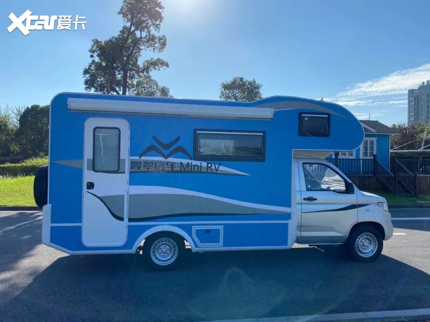 这款自由风CC在外观配色上与五菱百姓房车极为一致,蓝白配色,简约大方。整车长度 5990 *2490 *3120mm ,上蓝牌C照可驾驶,核定载客 6 人。