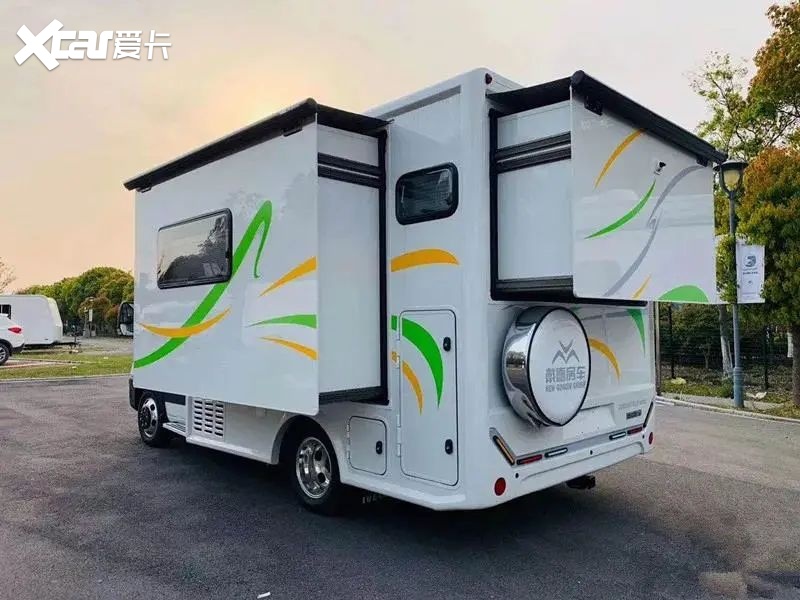 车身外观上,整车尺寸是5990X2470X2120mm,上蓝牌C照驾驶,左侧和尾侧均配备电动拓展舱,拓展舱上方有遮阳棚可起到一定的保护作用;而车外的各种实用性配置也很齐全,让出行有更多的体验;全国首创的四方位电动支腿(带水平调节),能应对各种驻车环境。