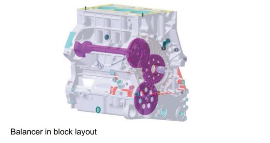 沃尔沃为了平衡1.5T三缸发动机的振动,专门开发了一套平衡轴系统,这套平衡轴由曲轴前端的齿轮驱动。并针对齿轮噪声专门进行了优化。平衡轴考虑了轻量化,采用中空设计。