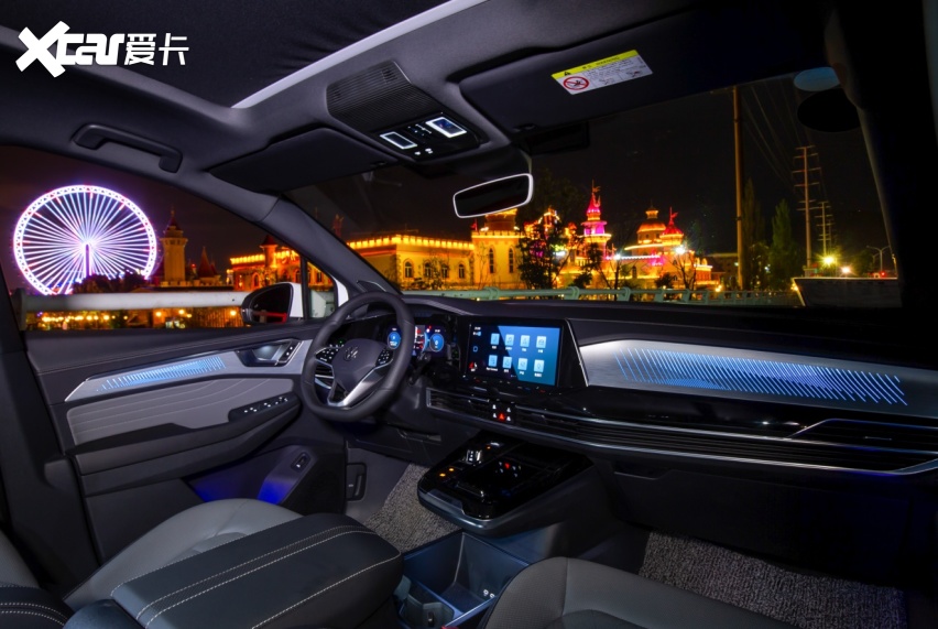 内饰上,揽境也进行了颠覆性创新设计,同级首创的云端悬浮式中控台设计,配合中控屏和液晶仪表板的连屏设计,以及全触控式按键,打造全数字座舱。30色可调的透光氛围灯在不同驾驶模式下可自动切换颜色,配合12个扬声器的Harman Kardon音响系统。