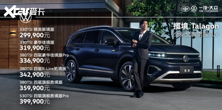 据悉,一汽-大众揽境提供2.0T标准功率、2.0T高功率、以及2.5T V6三种动力组合共6款车型,全系均提供6座/7座两种版本供用户选择,预售价格区间为29.99万-39.99万元。