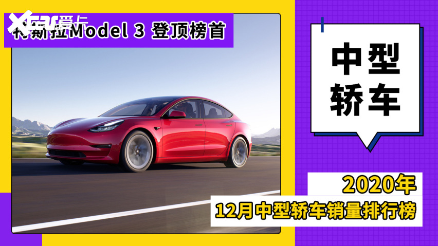 2020年12月中型轿车销量排行,特斯拉Model3登顶榜首