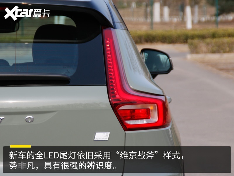 外观方面,新车基本延续了XC40燃油版车型的设计,其最大的变化是采用了全封闭的前格栅,表明了其新能源车型的身份。此外,在车身侧面双色车顶的尾部还采用了RECHARGE车型的专属标志。而在车尾方面,P8 AWD RECHARGE的标识也表明了其身份。