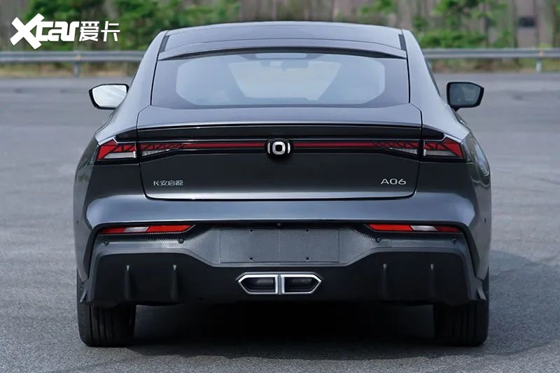 A06就是源于UNI-V的车身设计,区别是中网进气格栅的通风口数量进行了缩减,无界格栅没有那么突出,同时两侧进气口设计更像是战斗机风格,更锐利。尾部排气变为了中置双出,更有运动感——同时也保留了双边双出的设计。另外在车身尺寸方面,UNI-V车身长度为4680mm,而启源A06则是4720mm,加长了一些,但轴距还是2750mm。