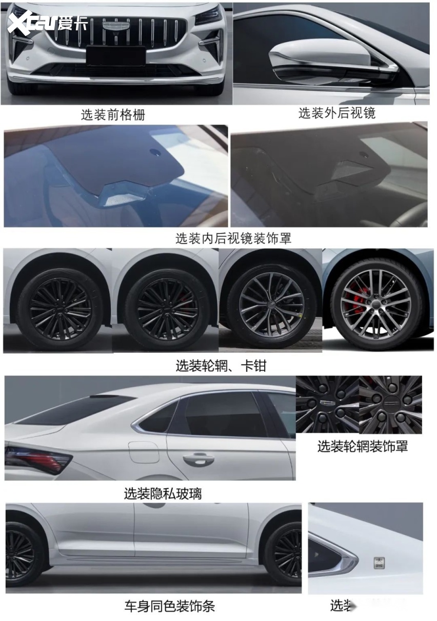 配置方面,新车采用17、18英寸两种轮胎,同时也有两种轮毂样式。天窗规格也是提供普通天窗和全景玻璃天幕两种,应该会和银河L7一样提升免费升级。