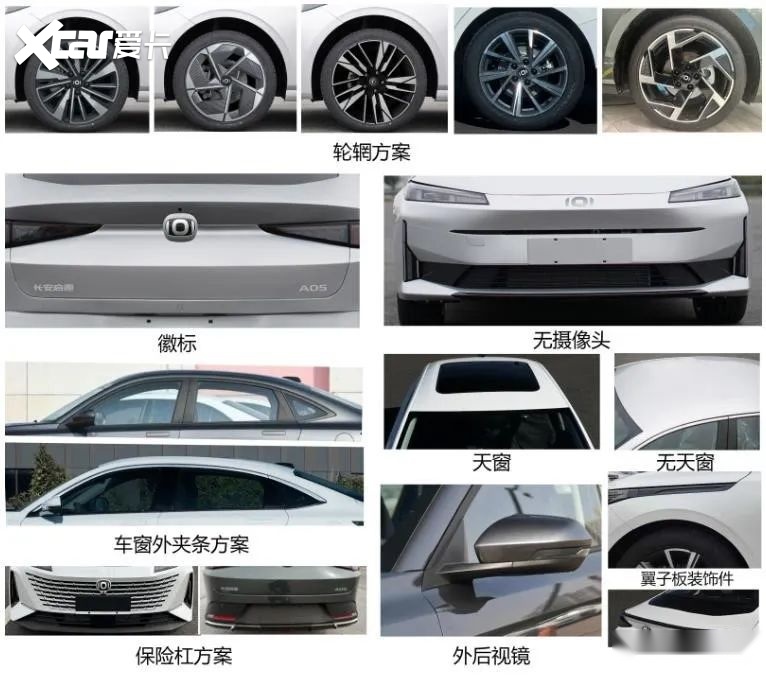 在配置方面,启源A05会有五种轮毂样式选择,车窗框也有半幅镀铬条的设计,可以选装黑色的小尾翼,另外低配也没有天窗。