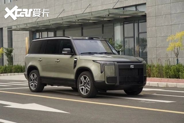 再来看看石头01这款车型,商标有点像个F字母,但实际是“石”字的简化。新车造型是典型的模仿了卫士,非常方正的盒子造型,背后也有经典的小书包,并且是侧开门。