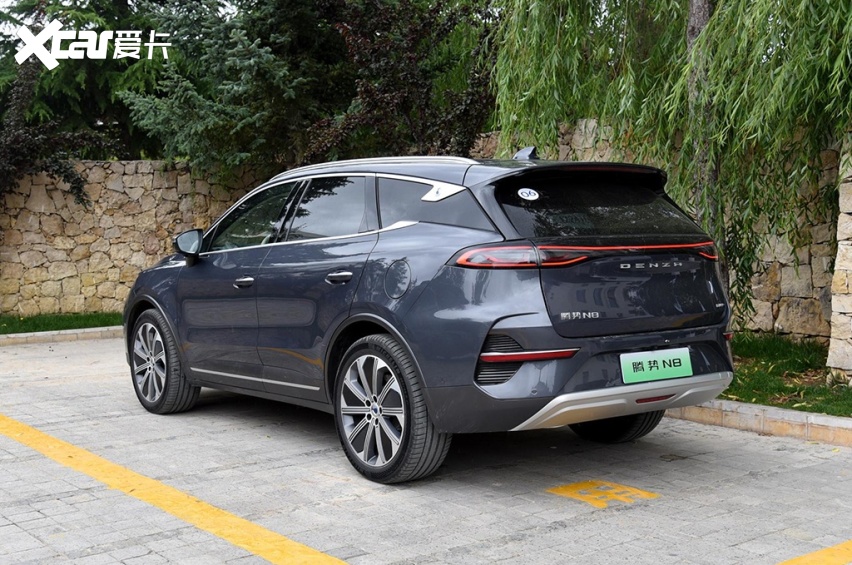 车身侧面较为圆润,而平直的车顶确保车内拥有足够的头部空间,同时C柱装饰增添了悬浮式车顶的效果。在车尾部分,腾势N8采用了独特的贯穿式灯组设计,带来较高的辨识度。车身尺寸方面,腾势N8的长宽高分别为4949/1950/1725mm,轴距为2830mm。