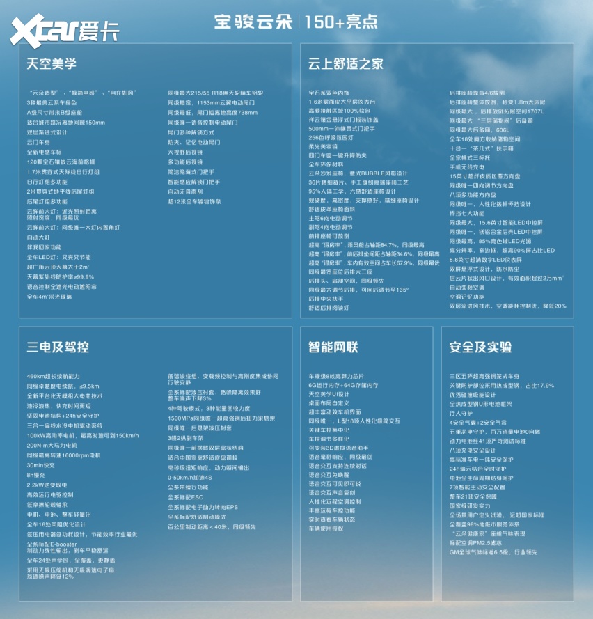 宝骏云朵拥有150+产品亮点,在外观、内饰、空间、动力续航、智能科技等方面尽展“史诗级”实力。