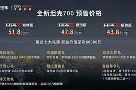 坦克品牌近日宣布,旗下新款坦克700将于4月20日正式上市。此前该车已开启预售,其中Hi4-Z版本提供两款车型,预售价分别为43.8万元和47.8万元;Hi4-T版本则推出一款配置