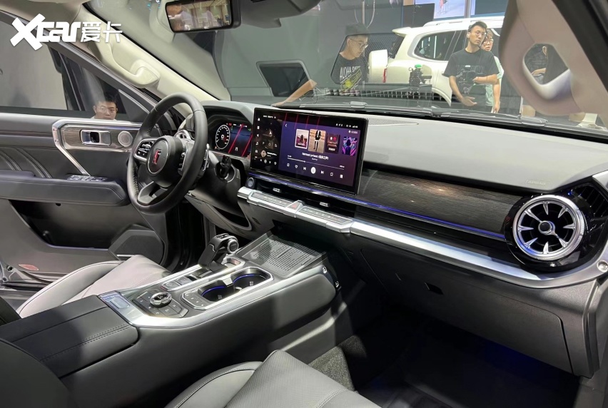 相比于外观的粗犷,车内则是另外一番景象,12.3英寸液晶仪表+16.2英寸超大中控屏+HUD抬头显示+流媒体后视镜,带来科技满满的驾乘体验,而软质材料和高亮黑色饰板的使用,也让其颇具质感。