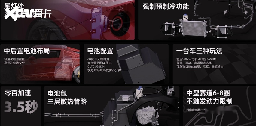 动力方面,SC01搭载的前后双电机能够输出最大功率425马力和最大扭矩560牛·米,这样的动力参数使得其0-100km/h加速时间仅需3.5秒。同时,60kWh的动力电池容量也能够保证CLTC工况下的续航里程大于520km,满足日常使用的需求。推杆式悬架结构和中后置布局的电池,更是为整车提供了极佳的操控性。