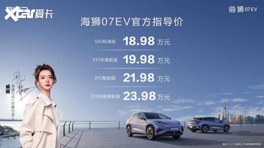 在核心的动力系统方面,海狮07EV搭载比亚迪全球首创的高效十二合一智能电驱系统,相比原来的八合一,集成度更高;全系搭载1200V碳化硅电控,采用23,000rpm全球量产最高转速电机,其极速可达225km/h以上,日常出行兼具更优秀的加速体验和更好的续航表现。