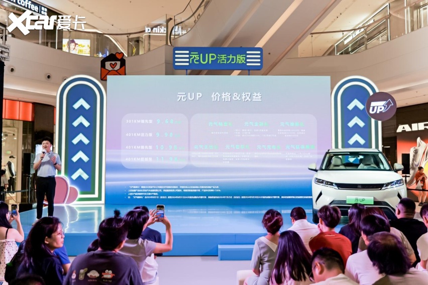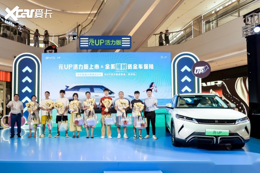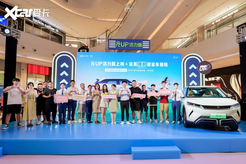 元气上新,活力开场。8月17日晚,在龙湖紫荆天街,“元UP活力版品鉴&全系限时送全车保险”元UP活力版品鉴会·杭州站圆满落幕。现场人潮涌动,充满了青春与活力的气息。在众多媒体大咖、车主粉丝的见证下,9万级准A纯电SUV元UP 401KM活力版车型惊喜亮相,指导价9.98万元,并且推出全系限时送全车保险的礼遇。