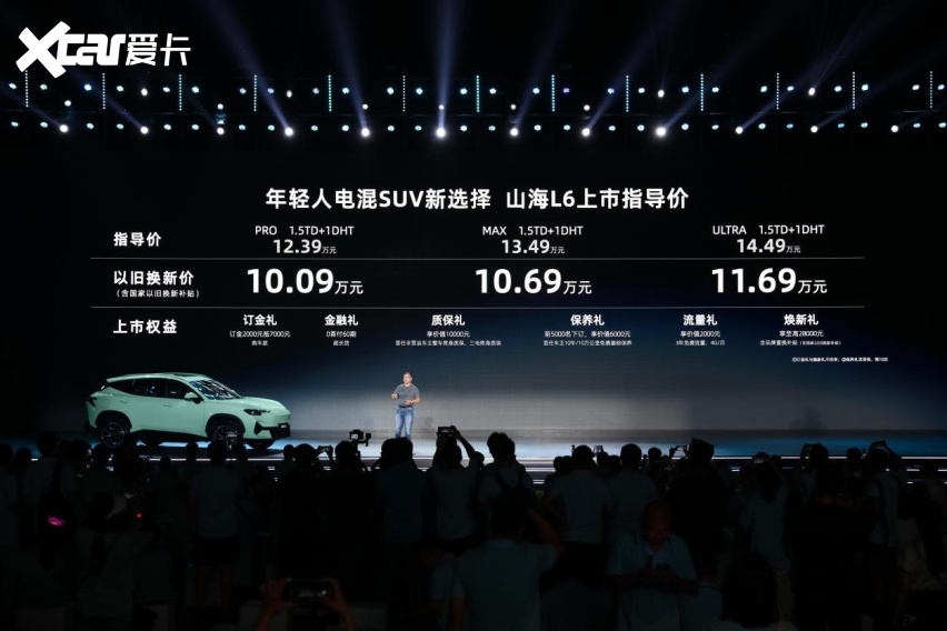 发布会现场,捷途汽车全新车型山海L6也正式上市,新车指导价12.39-14.49万元,并推出整车终身质保、三电终身质保等六大购车权益。捷途山海L6定位“年轻人电混SUV新选择”,以“有颜、有料、又省心”的三大核心价值,为年轻人打造旅行新搭子,创造更多旅行惊喜。