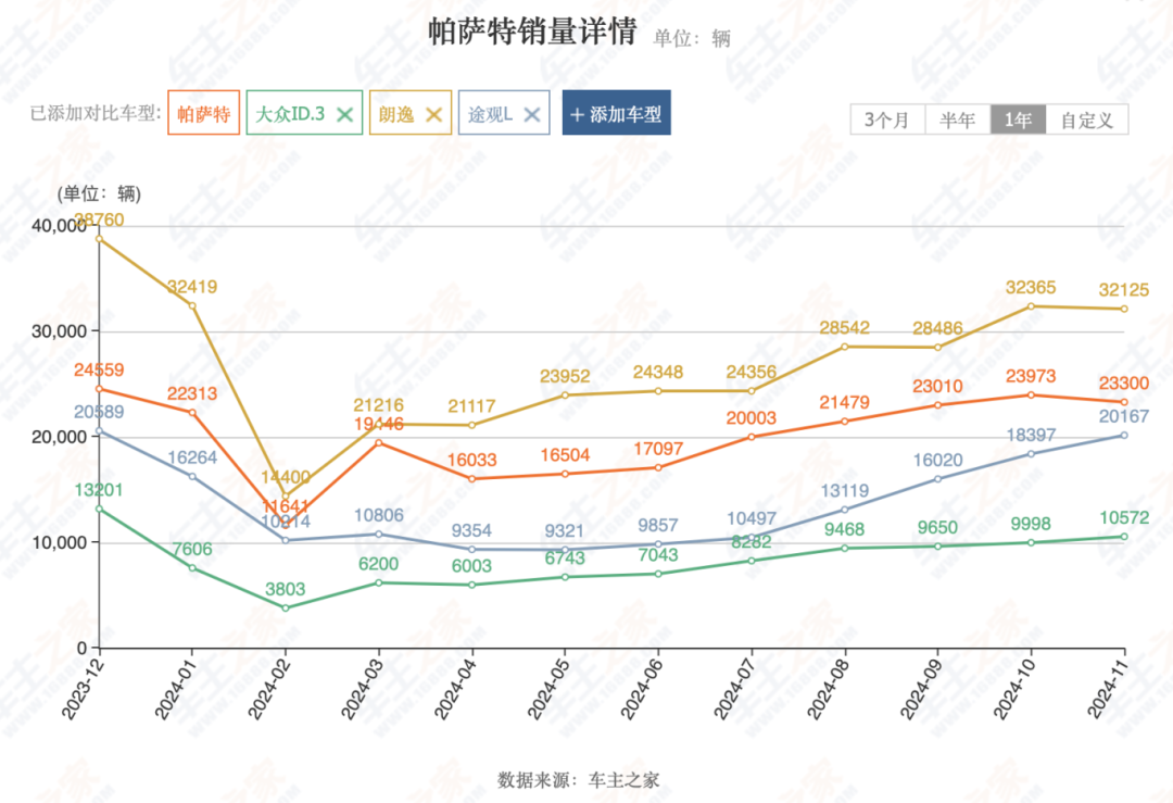 车型表现上,和大疆车载合作的高阶智驾,助力帕萨特家族在11月销量突破2.3万辆,今年全年帕萨特家族累计销量超22万辆;途观家族11月实现超2万辆的销量,今年累计销售超14.5万辆;作为首款推出“一口价”模式的车型,途岳新锐11月销量为1.2万辆。