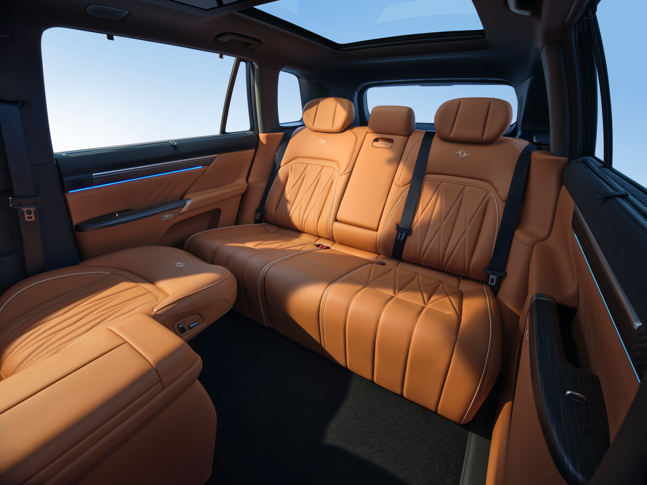 此外,在五座版车型上,eπ008还将行业首创的二排电动魔毯座椅升级为标配配置,包含二排4/6分多模式超大电动腿托和二排座椅角度电动无级调节。该座椅可联动前后排车内空间,为用户带来多种场景体验:后排座椅腿托全部升起后可形成1.5米长的横向单人床,可坐、可躺,主打一个随心。副驾放平、配合后排左侧腿托升起后,则可形成超2米的L型贵妃榻,午休小憩绝配。后排座椅放倒后更可实现同级唯一的2.4米超大双人床,SUV秒变露营房车。