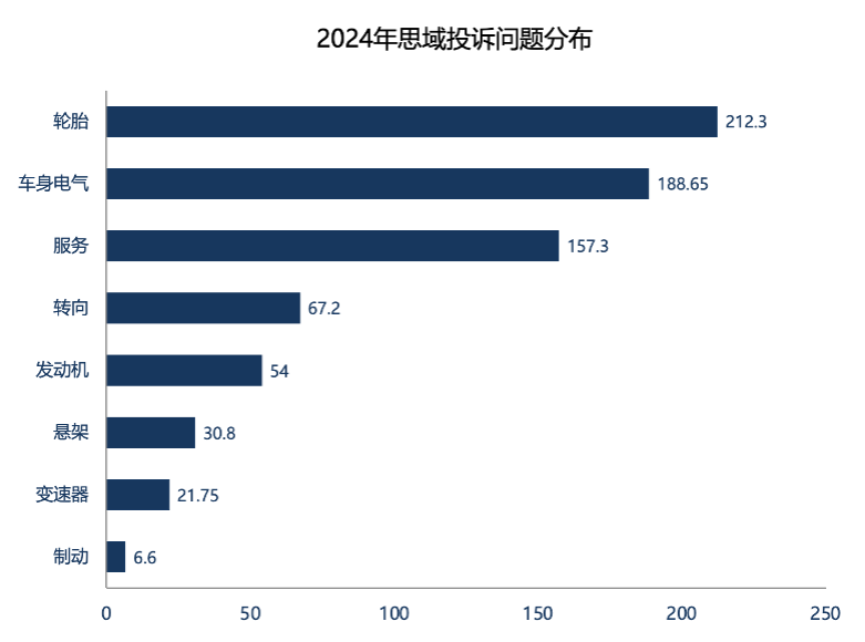 从投诉问题排行来看,轮胎的投诉指数来到了212.3,轮胎开裂起皮是幕后推手。问题主要存在于2016款和2019款,2021款、2022款和2023款也有分布,出现轮胎掉皮时的里程数主要在2000公里至40000公里不等。
