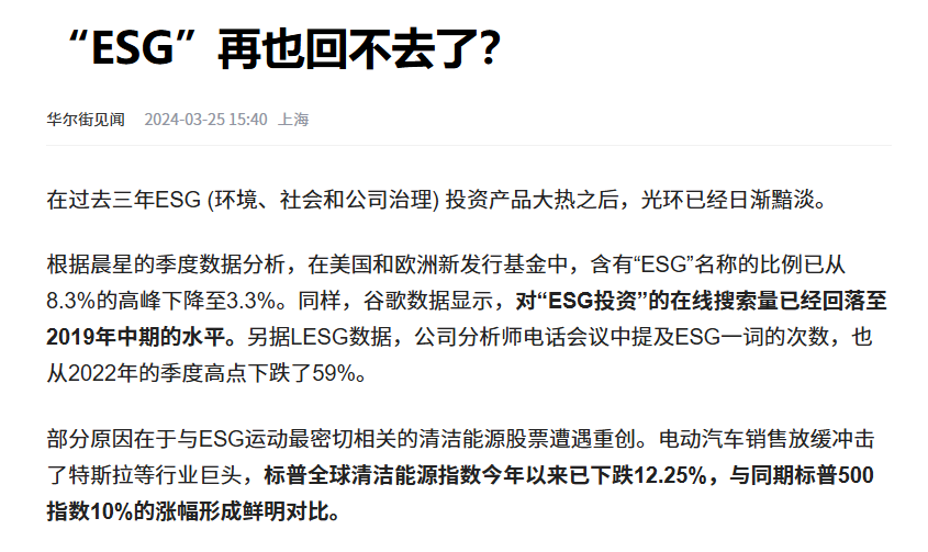 在说比亚迪的ESG报告之前,我们需要知道一个情况:目前国外基本都在弱化ESG概念,因为他们发现自己做不到,搞这个就是完全打自己的脸。