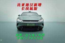 前些天比亚迪汉新车型刚刚上市,惊喜的这次推出的长续航版直接把起售价拉到了15.98万元,这个价格确实让人眼前一亮。作为月销经常破万的明星车型,汉这次加量还降价的动作,在当下竞争激烈的新能源市场可谓是一记重拳。