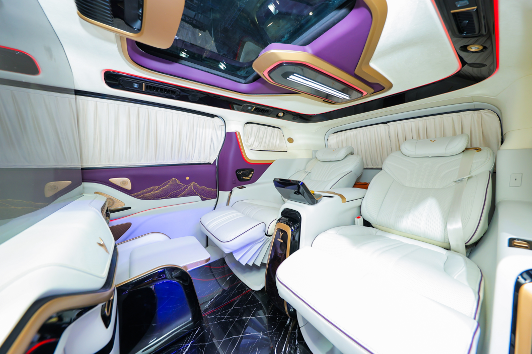 细节之处更见匠心:创新设计的中岛式电动鞋履仓,只需轻触按键即可优雅展开,配合自动升降脚托,完美解决高端人士的换鞋需求;50英寸4K智能投影系统支持商务演示与家庭影院模式的无缝切换,搭配全车28个扬声器的殿堂级音响系统,打造沉浸式视听盛宴。
