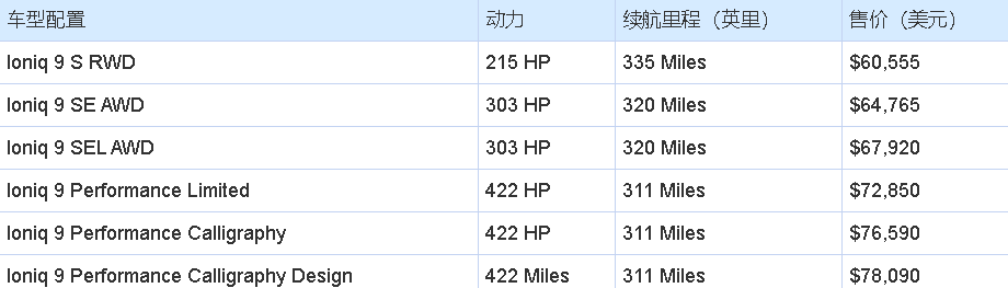 在新能源汽车市场的激烈角逐中,现代汽车近日又有大动作。定位中大型纯电 SUV 的现代 IONIQ 9 正式于美国上市,本次共推出 6 款车型,售价区间为 60555 - 78090 美元,约合人民币 44 万 - 56.8 万元,新车不久后便会抵达美国经销商门店 。这款车基于 E - GMP 平台打造,与起亚 EV9 共享平台,作为现代汽车的第四款电动车型,它在外观、内饰与动力方面都展现出独特魅力。如果有感兴趣的小伙伴,可以来了解一下。