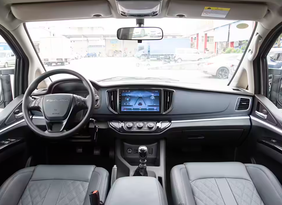 走进车内,内饰整体布局熟悉又实用。仪表盘保留了指针式速度表和功率输出表,让驾驶者对车辆状态一目了然。豪华版车型配备的中控触屏则增添了科技感,内置高德在线导航,无论是城市穿梭还是长途出行,都能精准规划路线;联网应用让信息获取更加便捷;蓝牙方便驾驶者在行车过程中安全通话。客运版提供7座和9座两种布局,C1/C2驾照持有者均可轻松驾驶。车内全车皮质座椅柔软且耐擦洗,日常清洁打理十分轻松。中排座椅支持手动旋转,并可锁定在前向、侧向、后向,灵活的空间布局能够满足商务接待、家庭出行、客货运输等多种场景需求。