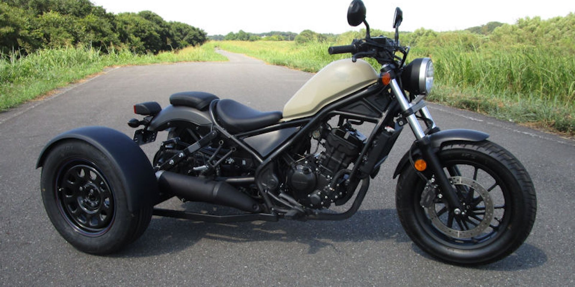 将 本田 Rebel 250 的复古巡航风格加上双后轮改装,这台由日本 Sakuma Engineering 制作的《Rebel 250 Trike》,不只是外形更具张力,也实现了三轮车款
