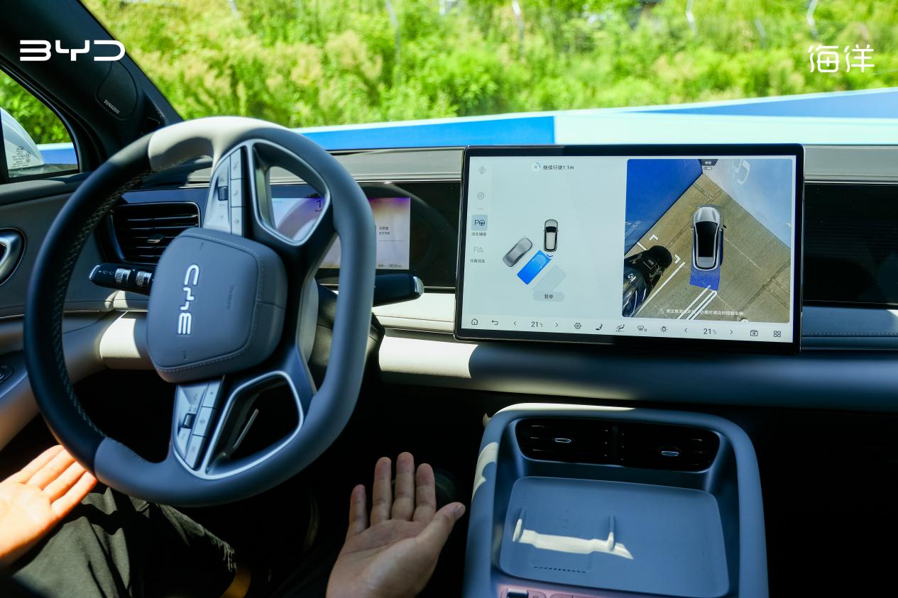 此次试驾的一大亮点,便是深度体验海狮06的智能驾驶辅助系统。海狮06全系标配天神之眼C - 辅助驾驶三目版(DiPilot 100),采用多传感器融合5R12V方案,遍布车身四周的29个智驾传感器,如同为车辆装上了“千里眼”,让探测范围更大,感知能力更强。结合自研车载计算平台、端到端大模型,系统能够在复杂路况下实现毫秒级响应,可实现高快领航、智能泊车等功能。
