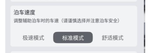 三速泊车通过天神之眼的超强感知能力,在满足安全的前提下给予用户更多的自主选择权。用户可以自主选择“舒适”“标准”和“极速”三种泊车速度。舒适模式下,泊车速度最高可达2-3km/h,标准模式下最高可达3-4km/h,极速模式下最高可达4-5km/h。