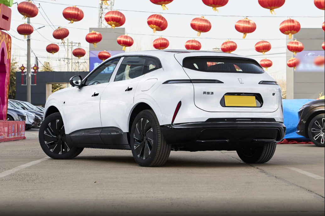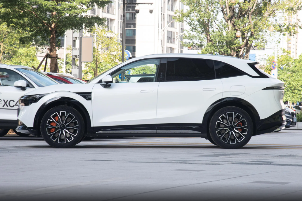 侧面造型同样简洁流畅,无水切设计和无边框后视镜更是强化了整车的精致感。此外,车身上还采用了无框车门、电动尾门、隐藏式门把手以及全车无钥匙进入,这些均为全系标配。另外,车尾部分也同样强调简洁处置,狭长的光带在尾端形成了关键覆盖,并将更多结构空间留给了后保险杠,它有着十分积极的向上抬升,并实现了上烤漆与下金属的混合装饰,这将能够为车辆带来了一些通过性优化。