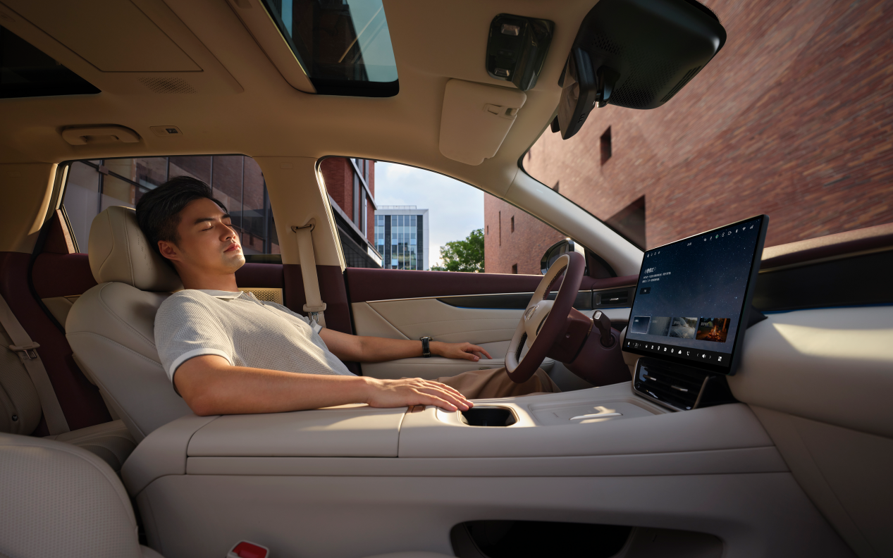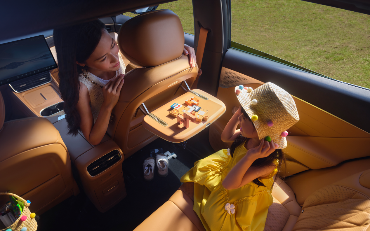 除此之外,东风风神L8配备了同级唯一的4.5L大容量后排冷暖箱,支持前后排抽拉取用,满足旅途中的冷热饮需求。15.6英寸后排2.5K高清吸顶屏,支持多种内容接入及前后大屏三指飞屏互动,配合承重达10kg的航空级小桌板,将后排灵活转变为娱乐、学习或移动办公空间。19扬声器WANOS全景声音响系统,拥有600W功率和12通道输出,带来沉浸式的听觉盛宴。为营造顶级静谧性,东风风神L8前挡风和前排车窗均采用双层隔音玻璃,并搭配米其林新能源专用静音轮胎,整车静谧性相比同级降低噪音达40%。