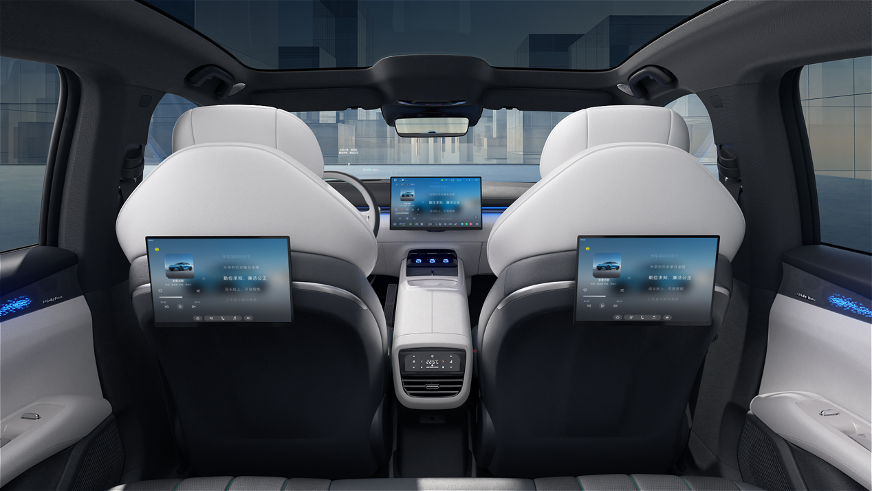 此外,座舱内饰细节上,配备了云感舒享双零重力座椅,支持座椅记忆迎宾、三档可调节座椅通风加热、8点分区手感按摩等多项功能,为用户打造豪华SPA级放松舒享驾乘体验。同级领先的7.3.4杜比音乐厅,带来Live House沉浸奢享。联动音乐律动座椅、智能香氛系统、情感交互64色氛围灯、智能空调系统等更多功能配置,共同营造出“视、听、嗅、触、温”五感联动沉浸体验。值得一提的是,后排门窗及后挡风隐私玻璃,在实现保护隐私的同时,还具备更优的隔热和隔紫外线性能。