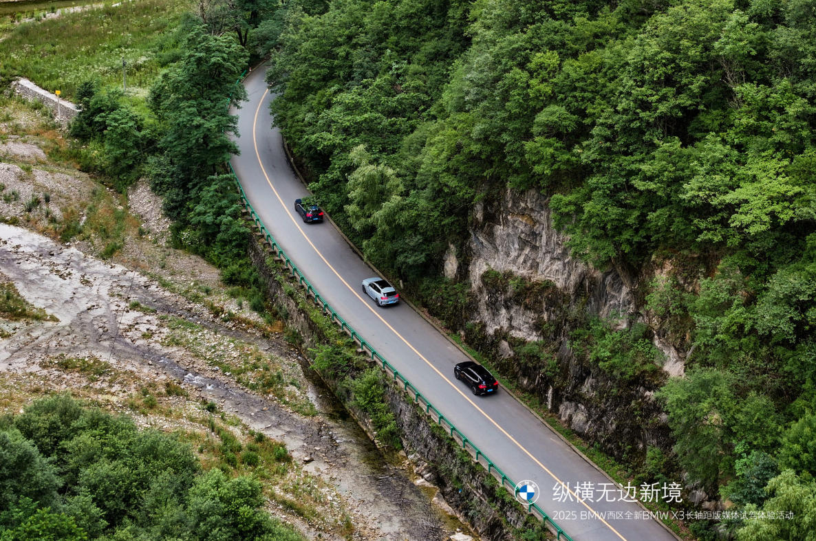 车队蜿蜒驶入秦岭褶皱,留坝的夏日山色在车窗外渐次铺展。十万青山如翠屏层叠,冷杉与云杉交织的浓荫浸透山岚,野山茱萸擎着珊瑚色花穗摇曳路旁,连风中都裹挟着松针清冽的凉意。行于此间,全新BMW X3长轴距版宛如一艘流线型的金属方舟泊入翡翠海洋。车身在枝叶筛落的碎金阳光中流转着珠贝光泽,2,975mm的中国专属加长轴距令恢弘大气与舒适体验相得益彰,与冷杉林深邃的墨绿形成冷暖相宜的对话,经全新设计的BMW环形光耀格栅在山涧粼光映照下,与双L型大灯相辅相成,尽显卓越气度,将工业美学悄然熔铸进秦岭的雄浑肌理。