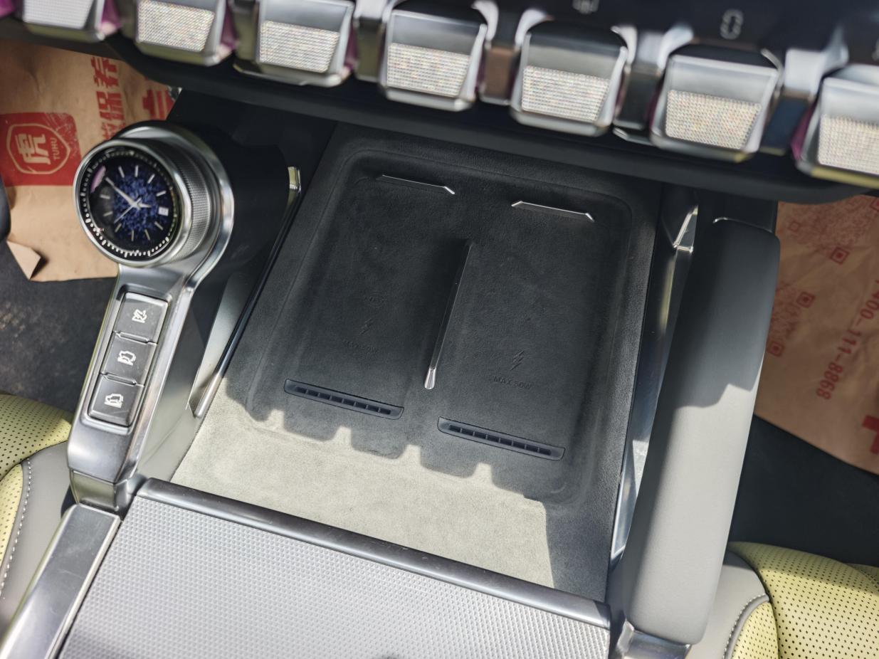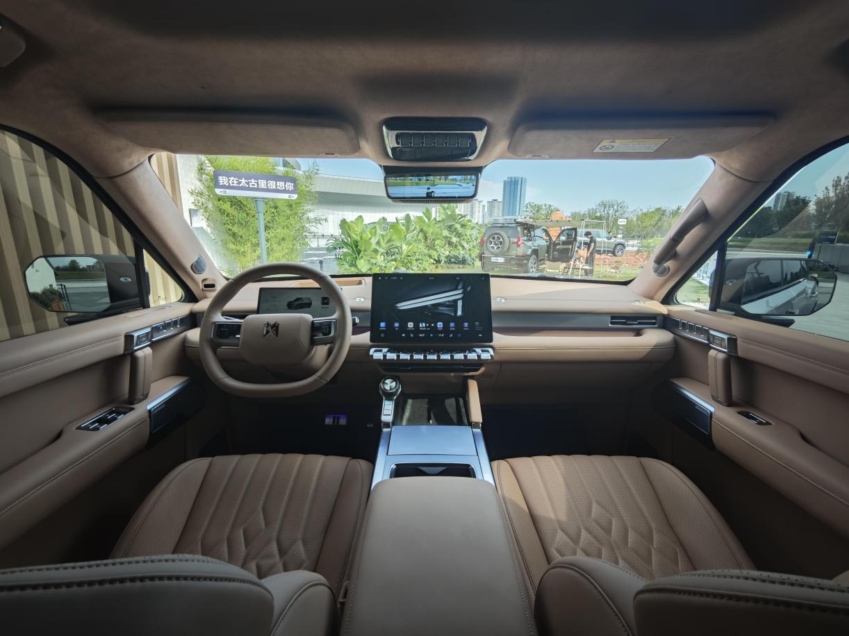 配置方面,猛士M817配备W-HUD、流媒体后视镜、双50W手机无线充电、Nappa真皮座椅、前排座椅加热/通风/按摩、带负离子净化的智能空调、香氛系统、18扬声器丹拿音响、256色氛围灯、双层隔音玻璃、主动降噪、五门静音电吸门、-6°~50°冷暖两用冰箱等。