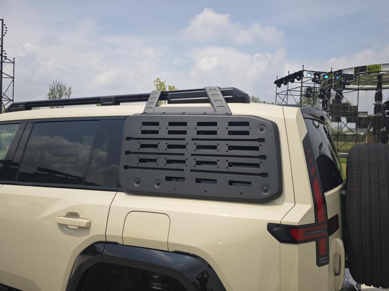 车尾两侧的剑指苍穹尾灯在点亮后非常有个性,而后尾门的打开方式也为硬派越野车常见的侧开式。同时,车尾将提供“小书包”以及车尾挂胎两种设计,以满足城市和越野双用户的需求。