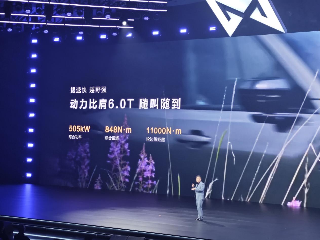 动力上,猛士M817搭载1.5T插混动力系统,发动机的热效率达到了45.18%,发动机最大功率145kW,系统综合功率505kW,综合扭矩848N·m,零百加速时间为5.2秒。电池组容量为31.7kWh,CLTC工况下纯电续航为140km,CLTC馈电油耗7.24L/100km,配备84L的超大油箱,综合续航里程达到了1300km。另外,该车还能选装拖挂资质,最大拖挂能力为2.5吨,拖房车、摩托艇、摩托车都不在话下。