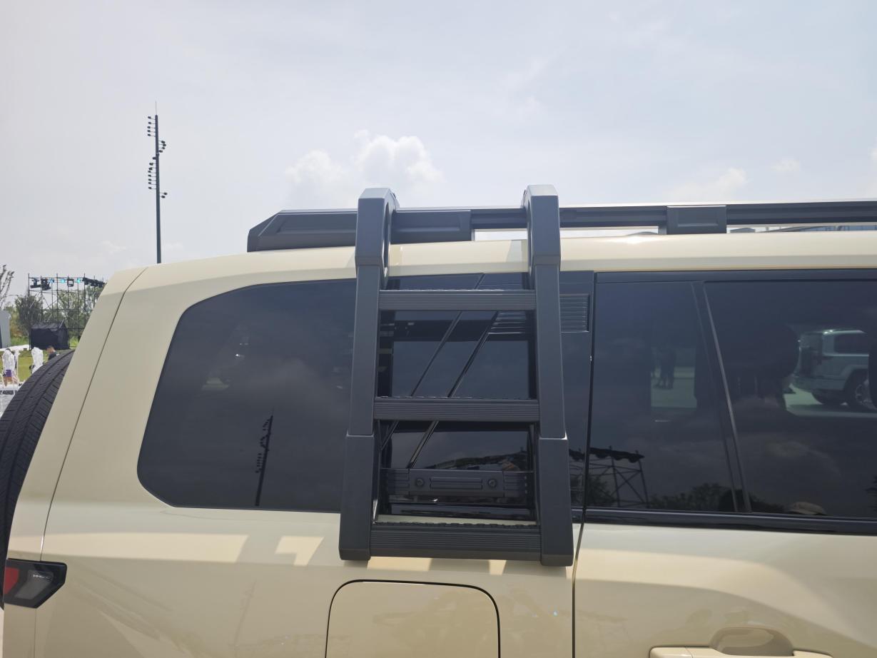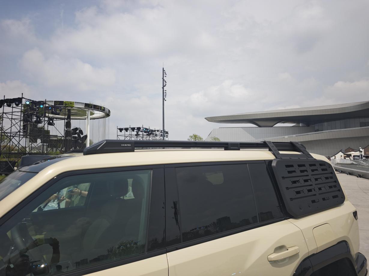 发动机盖隆起的车头线条与多段切面造型,搭配上隆起轮眉设计和防擦轮眉护板,表现出很强的肌肉感。猛士M817能选装车顶射灯、车侧攀爬梯、车侧装备挂架,搭配上带导轨的车顶行李架,能满足越野用户的个性化改装需求。